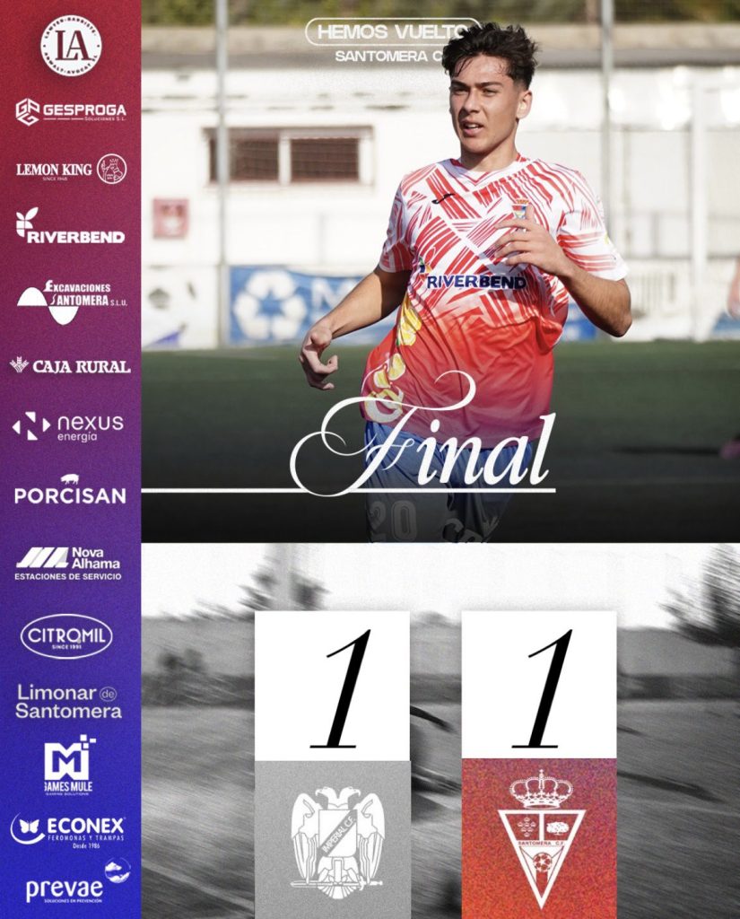 Nuestro CF Santomera sigue sumando una jornada más. Los de Asensio rascaron un valioso empate en casa del Real Murcia Imperial. Alonso Yoldi adelantó al filial grana y José Ruiz empató de penalti a lo panenka para los nuestros. Con este empate, el CF Santomera continúa una semana más en puestos de playoff de ascenso […]